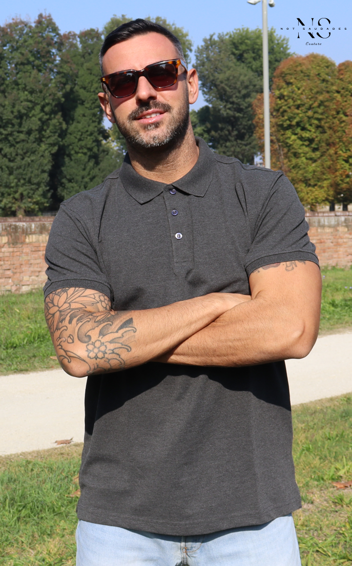 Polo piquet mezza manica. Tessuto pettinato stabilizzato. Tre bottoni tono su tono. Nastrino parasudore. Bordo manica con costina. Cuciture ribattute. Spacchetti laterali. Vestibilità slim-fit.